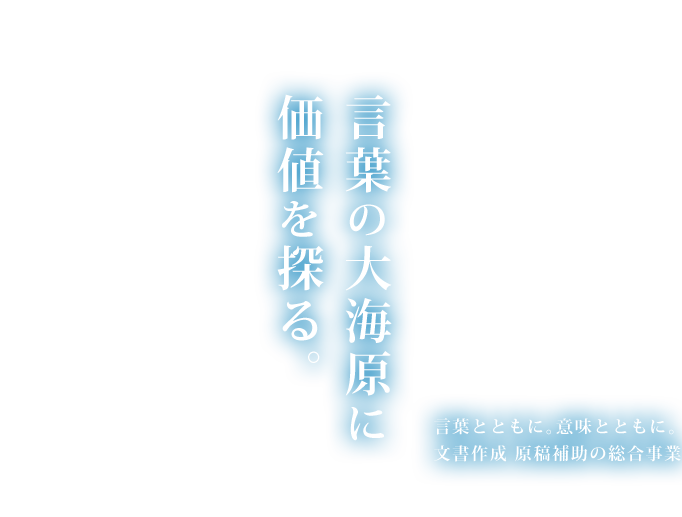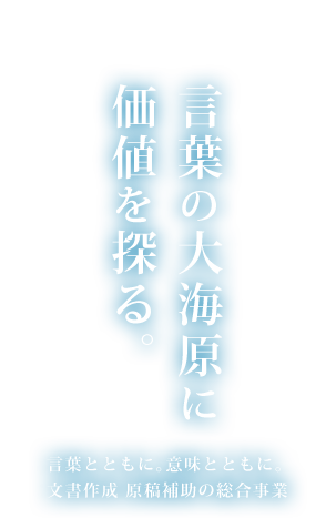創造性の価値を増幅する小説の代筆、伝記(自伝・社史)作成、目的遂行のための手紙やレポート、ビジネス文書の代筆、スピーチやPR原稿制作など、多彩なノウハウをご利用いただけます。